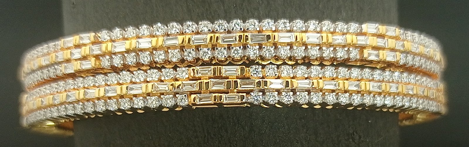 : Article Description :One pair Bangles weighing in total 56.77 gms, studded with 512 Pcs Diamonds.![]()