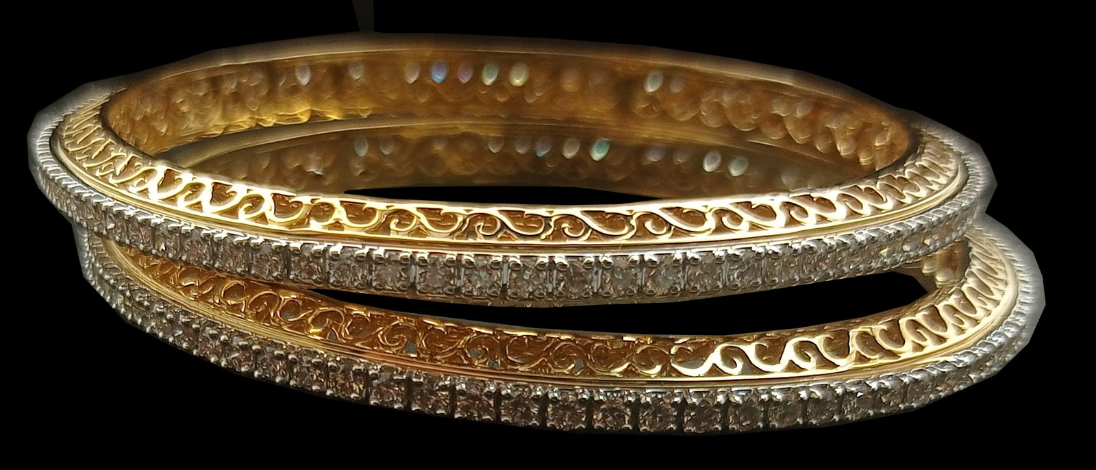 : Article Description :One pair Bangles weighing in total 45.25 gms, studded with 164 Diamonds.![]()