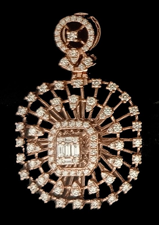 : Article Description :One Pendent weighing in total 7.55 gms, studded with 109 Diamonds.![]()