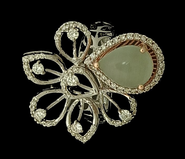 : Article Description :One Ring weighing in total 6.35 gms, studded with 77 Pcs Diamonds.![]()