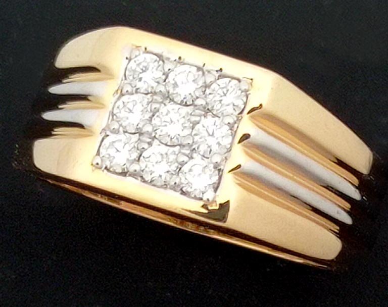 : Article Description :One Ring weighing in total 6.39 gms, studded with 09 pcs Diamonds.![]()