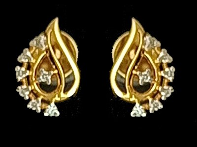 : Article Description :One pair Earring weighing in total 1.46 gms, studded with 14 Diamonds.![]()
