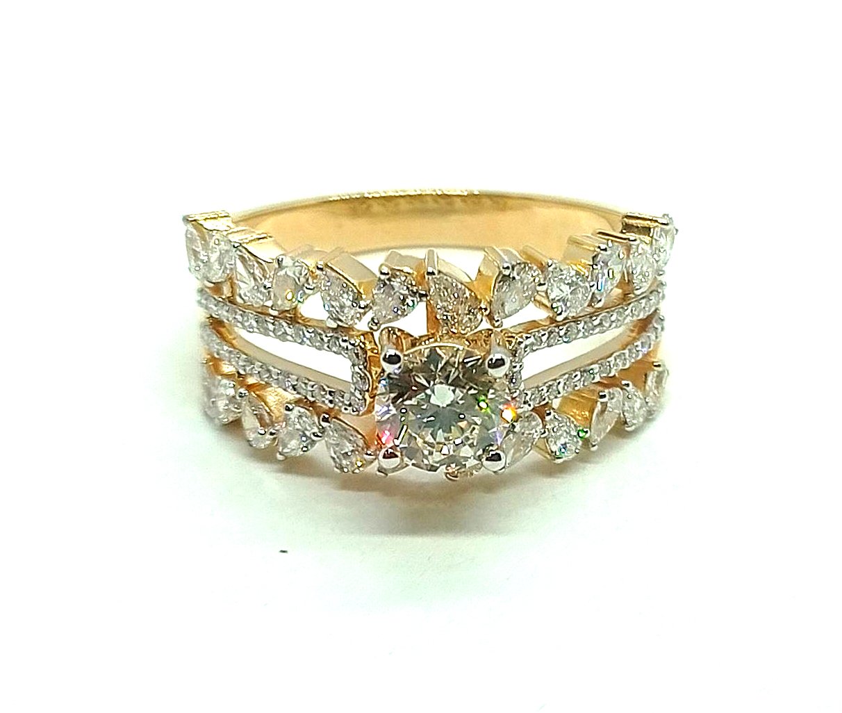 : Article Description :One Ring weighing in total 7.95 gms, studded with 70 Pcs Diamonds.![]() SYNTHETIC MOISSANITE
