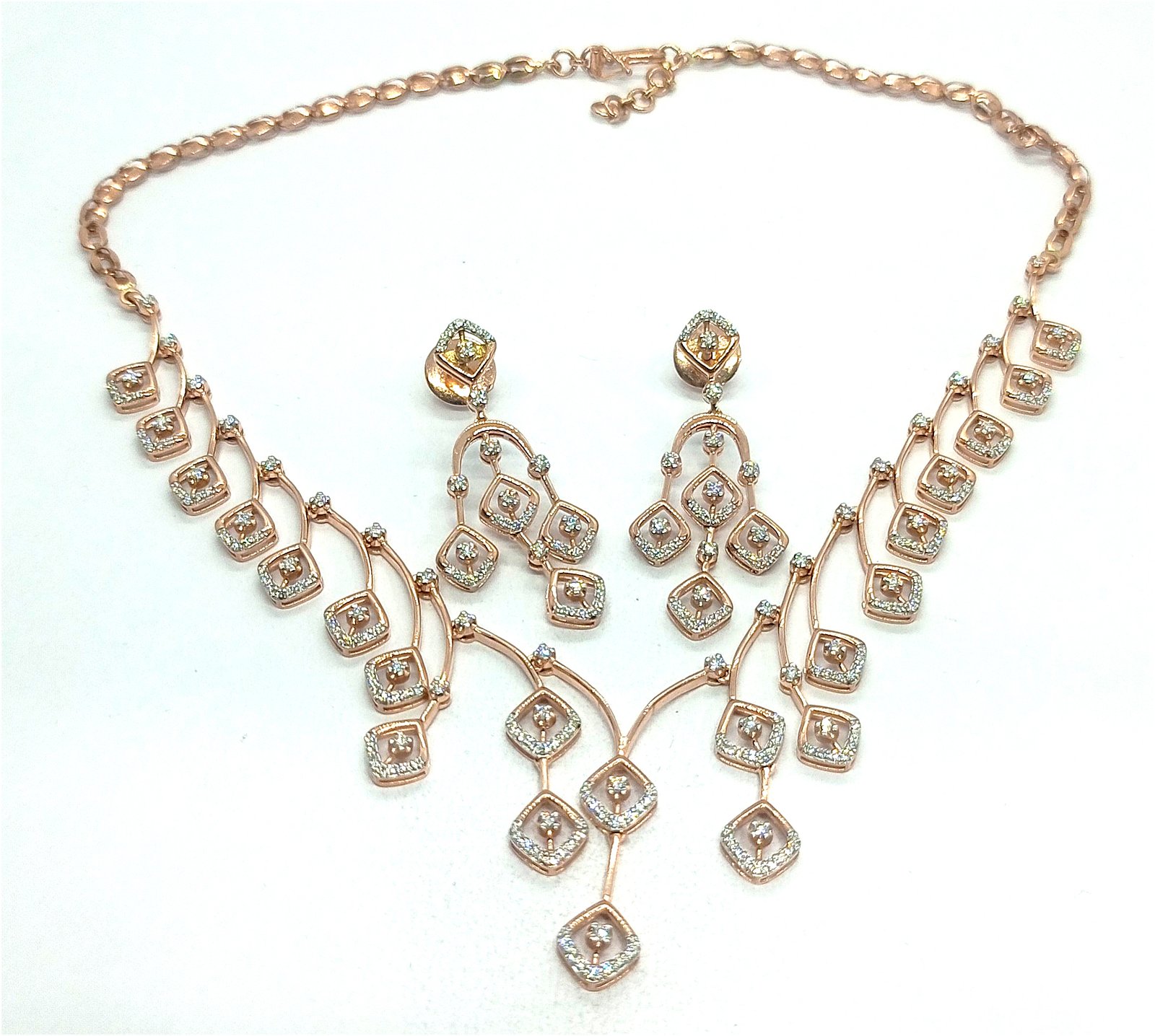 One Necklace Set weighing in total 31.40 gms, studded with 272 Pcs Diamonds.
