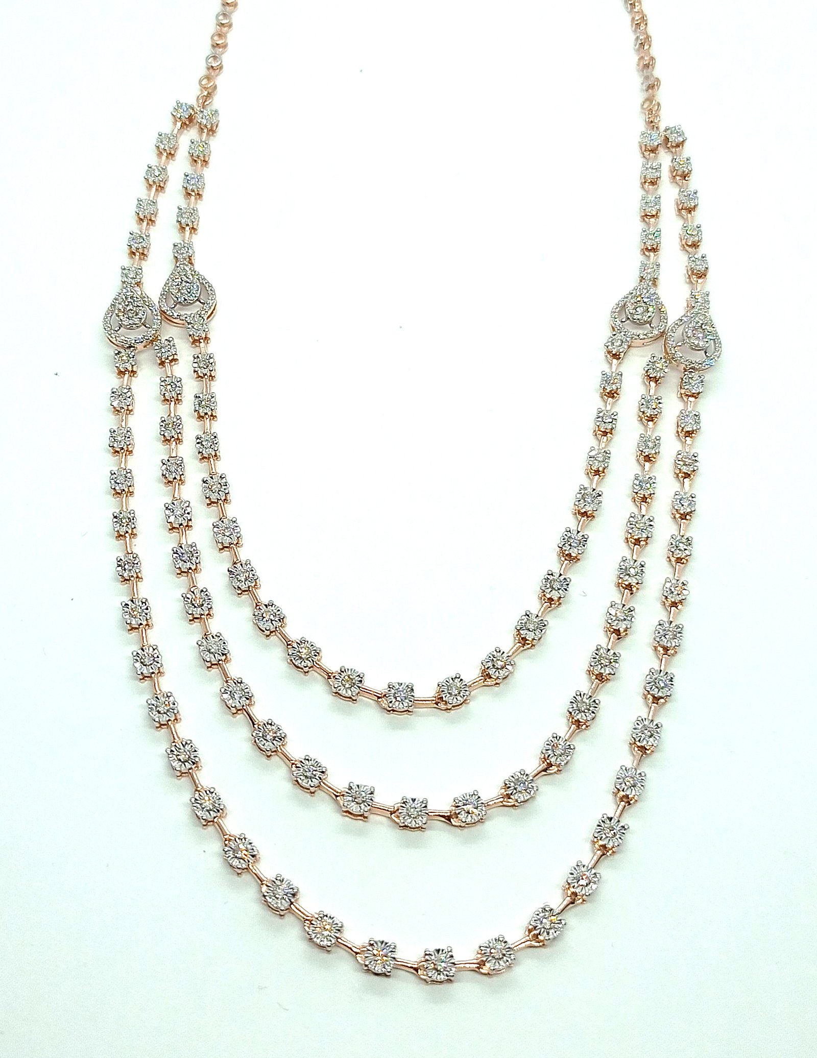 One Necklace weighing in total 31.58 gms, studded with 234 Pcs Diamonds.