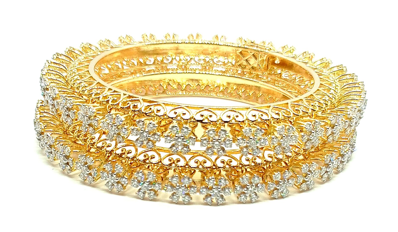 One pair Bangles weighing in total 85.10 gms, studded with 476 Pcs Diamonds.