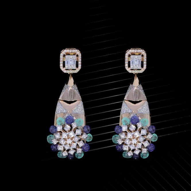 One pair Earring weighing in total 17.56 gms, studded with 312 Pcs Diamonds.
