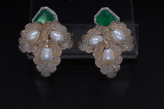 One pair Earring weighing in total 23.16 gms, studded with 506 Pcs Diamonds.
