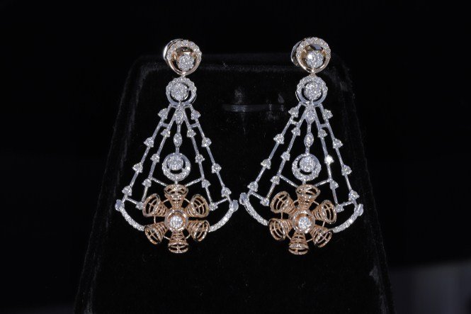 One pair Earring weighing in total 11.34 gms, studded with 158 Pcs Diamonds.