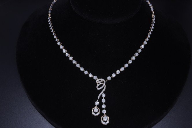 One Necklace weighing in total 15.87 gms, studded with 104 Pcs Diamonds.