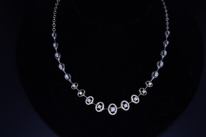 One Necklace weighing in total 12.07 gms, studded with 121 Pcs Diamonds.