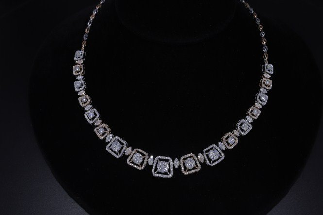 : Article Description :One Necklace weighing in total 22.91 gms, studded with 519 Pcs Diamonds.![]() ***
