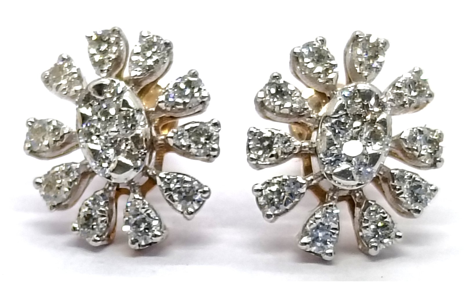 One pair Earring weighing in total 2.49 gms, studded with 56 Pcs Diamonds.