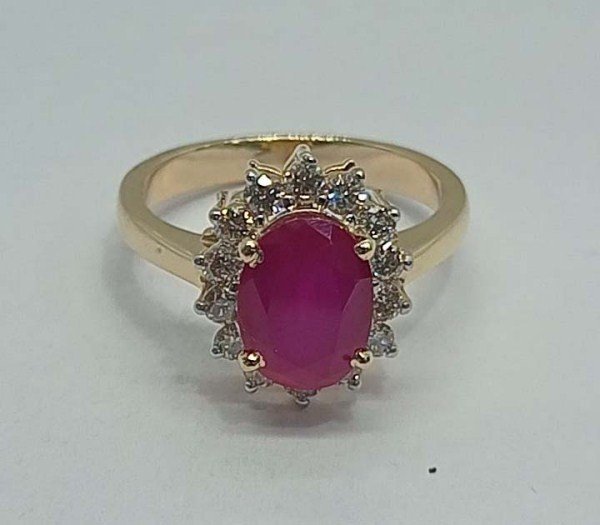 : Article Description :One Ring weighing in total 4.26 gms, studded with 14 Diamonds.![]() SYNTHETIC RUBY