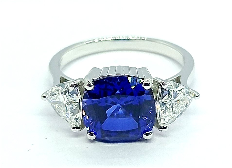 : Article Description :One Ring weighing in total 4.16 gms, studded with 02 Pcs Diamonds.![]() NATURAL BLUE SAPPHIRE
