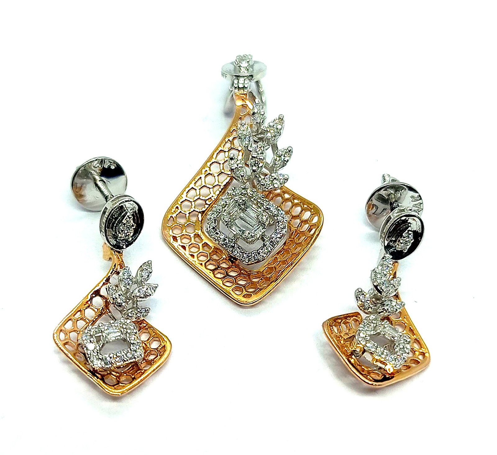 : Article Description :One Pendent Set weighing in total 8.60 gms, studded with 95 Pcs Diamonds.![]() ***