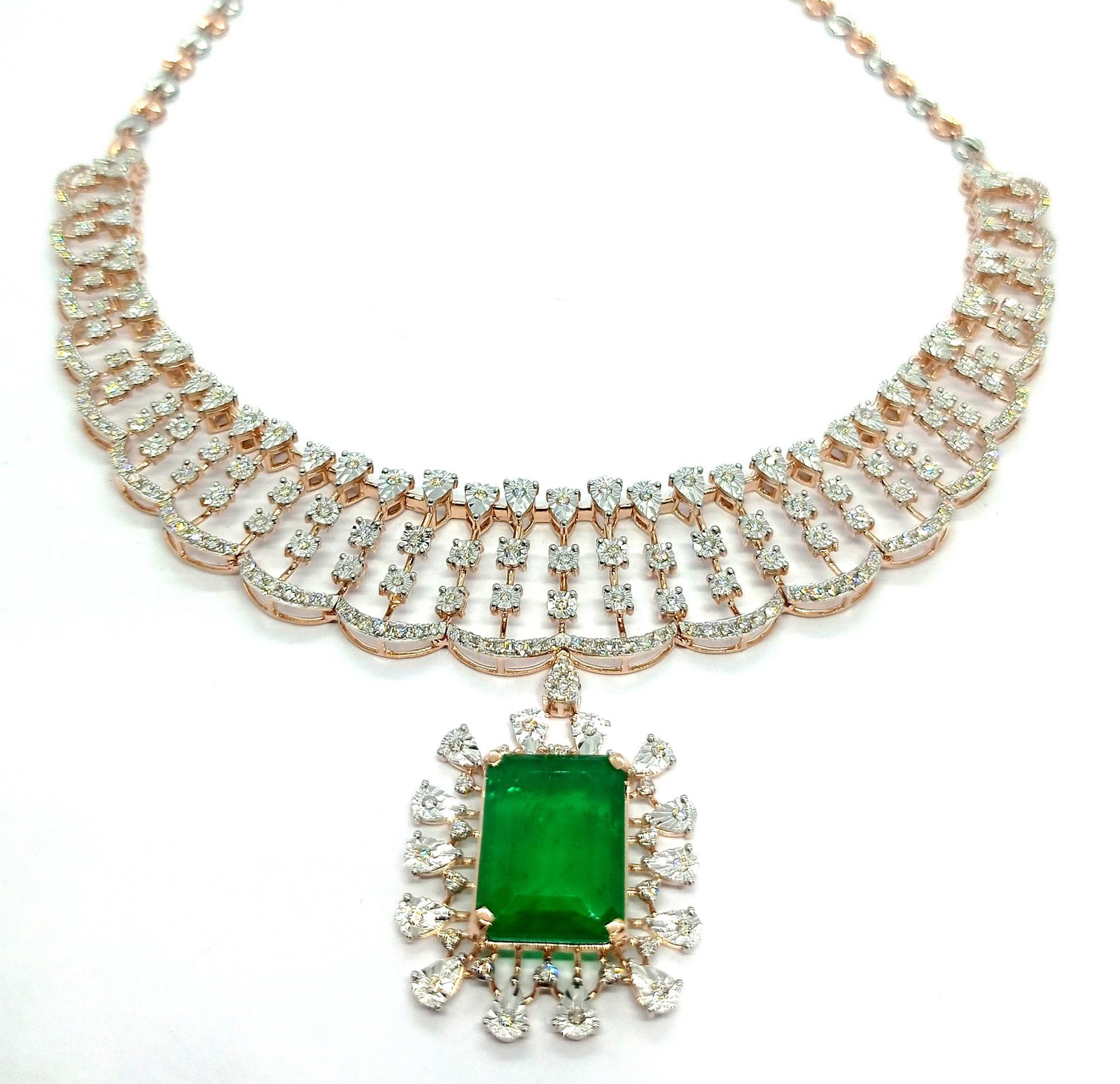 One Necklace weighing in total 31.30 gms, studded with 279 Pcs Diamonds.