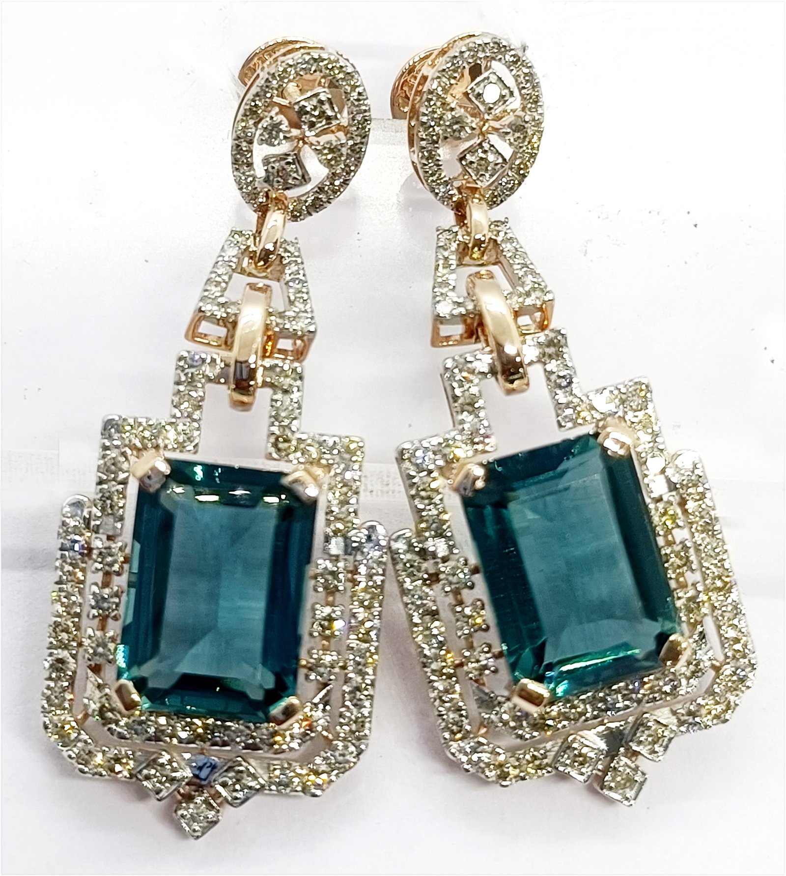 : Article Description :One pair Earring weighing in total 17.18 gms, studded with 162 Pcs Diamonds.![]() SYNTHETIC MOISSANITE