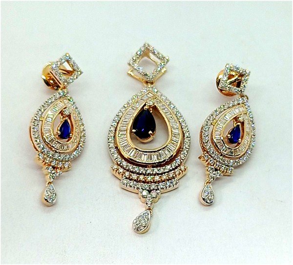 : Article Description :One Pendent Set weighing in total 23.346 gms, studded with 303 Pcs Diamonds.![]() ***