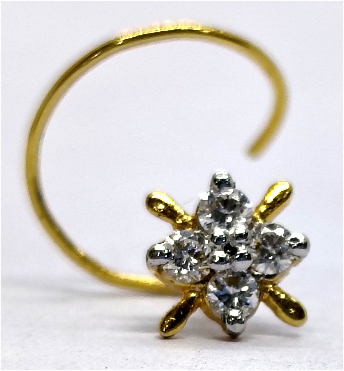 : Article Description :One Nose pin weighing in total 0.33 gms, studded with 04 Pcs Diamonds.![]() SYNTHETIC MOISSANITE