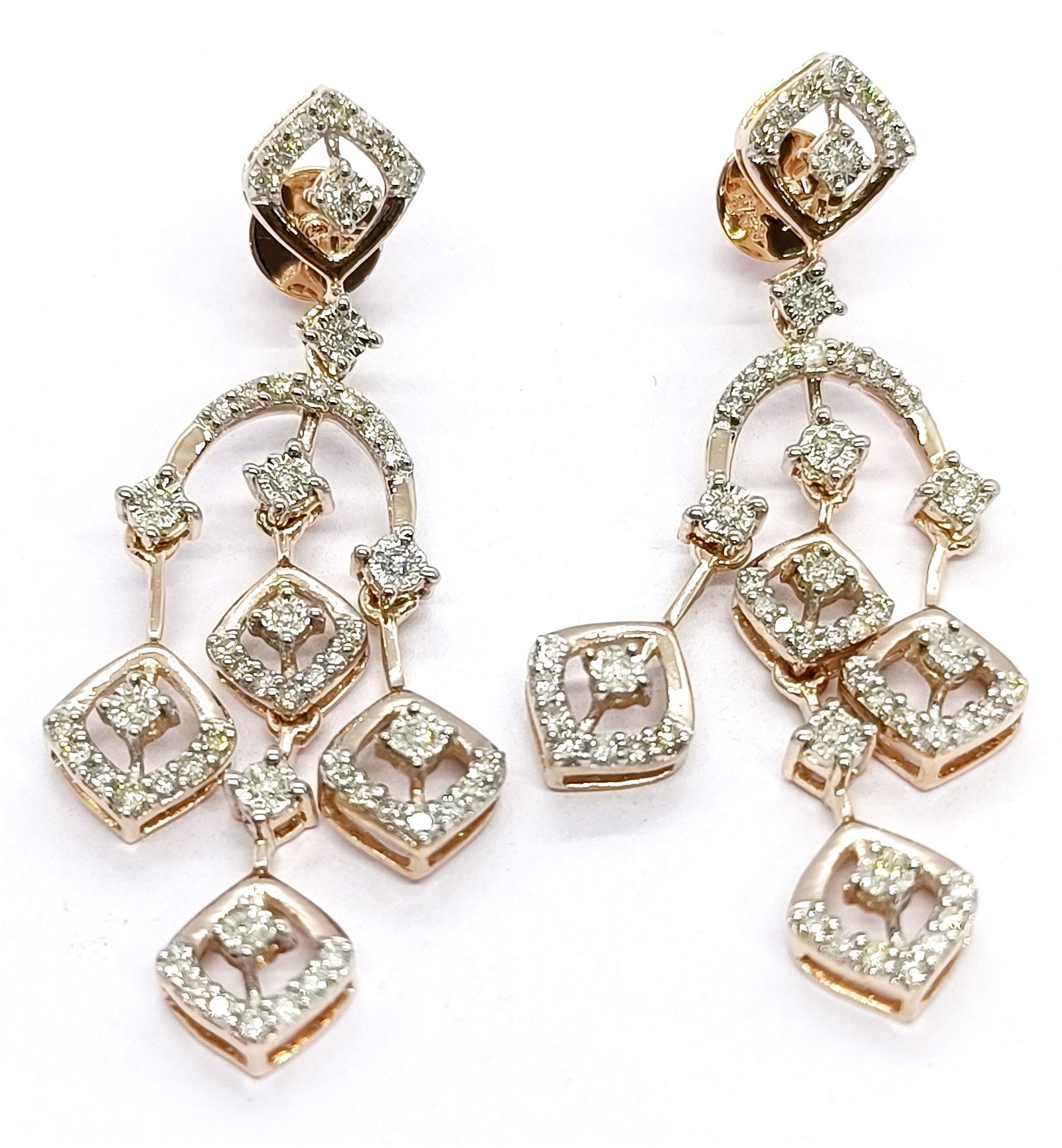 : Article Description :One pair Earring weighing in total 5.46 gms, studded with 104 Pcs Diamonds.![]() SYNTHETIC MOISSANITE