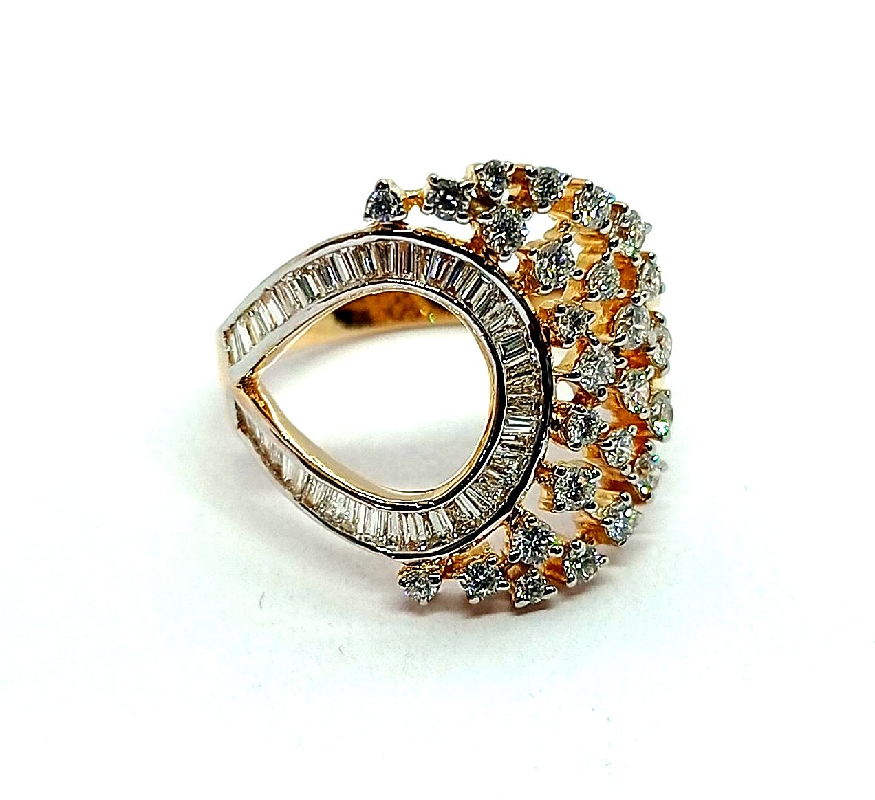 : Article Description :One Ring weighing in total 4.40 gms, studded with 68 Pcs Diamonds.![]() SYNTHETIC MOISSANITE
