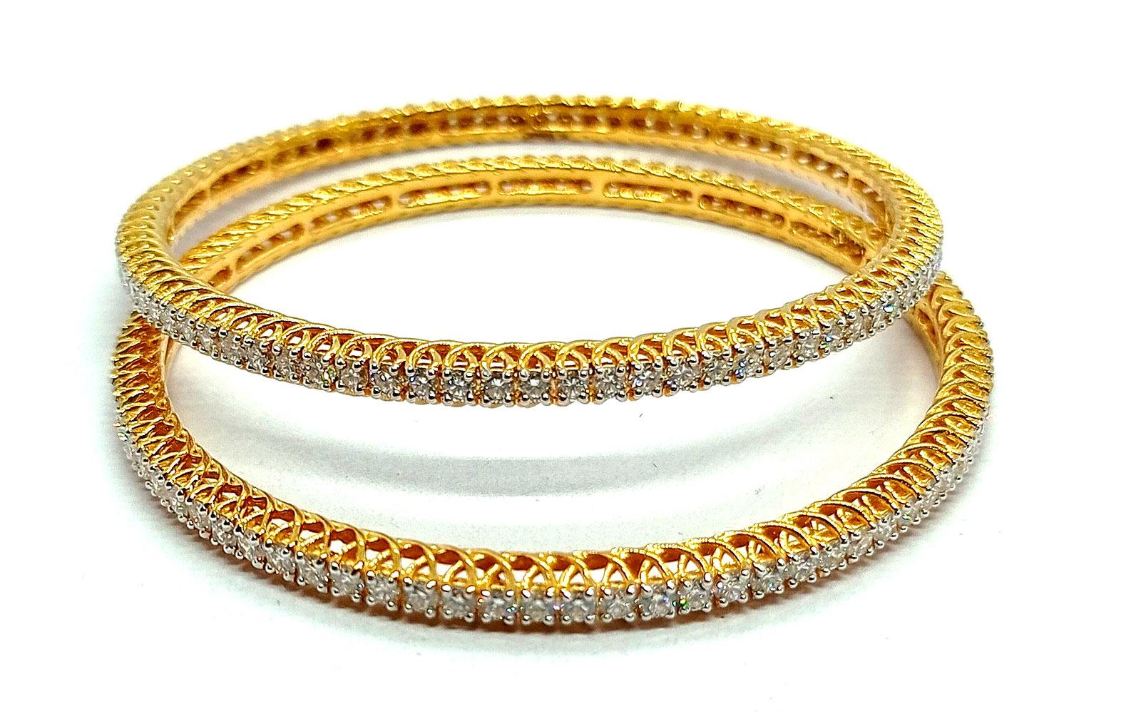 One pair Bangles weighing in total 37.10 gms, studded with 208 Pcs Diamonds.