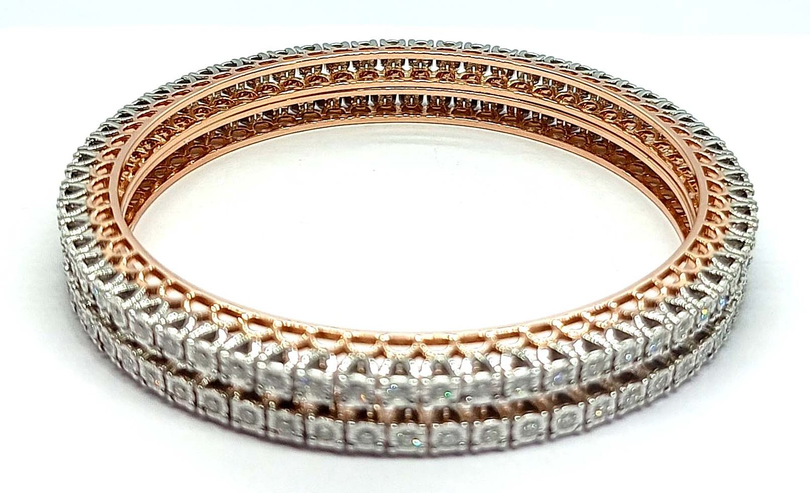 One pair Bangles weighing in total 46.51 gms, studded with 124 Diamonds.