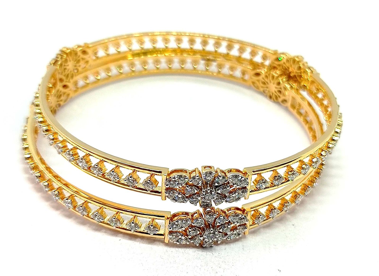 One pair Bangles weighing in total 37.19 gms, studded with 192 Pcs Diamonds.