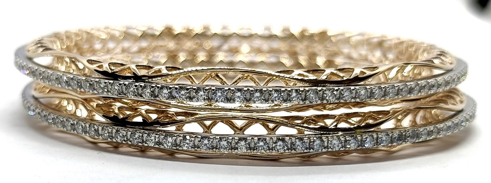 One pair Bangles weighing in total 34.33 gms, studded with 200 Pcs Diamonds.