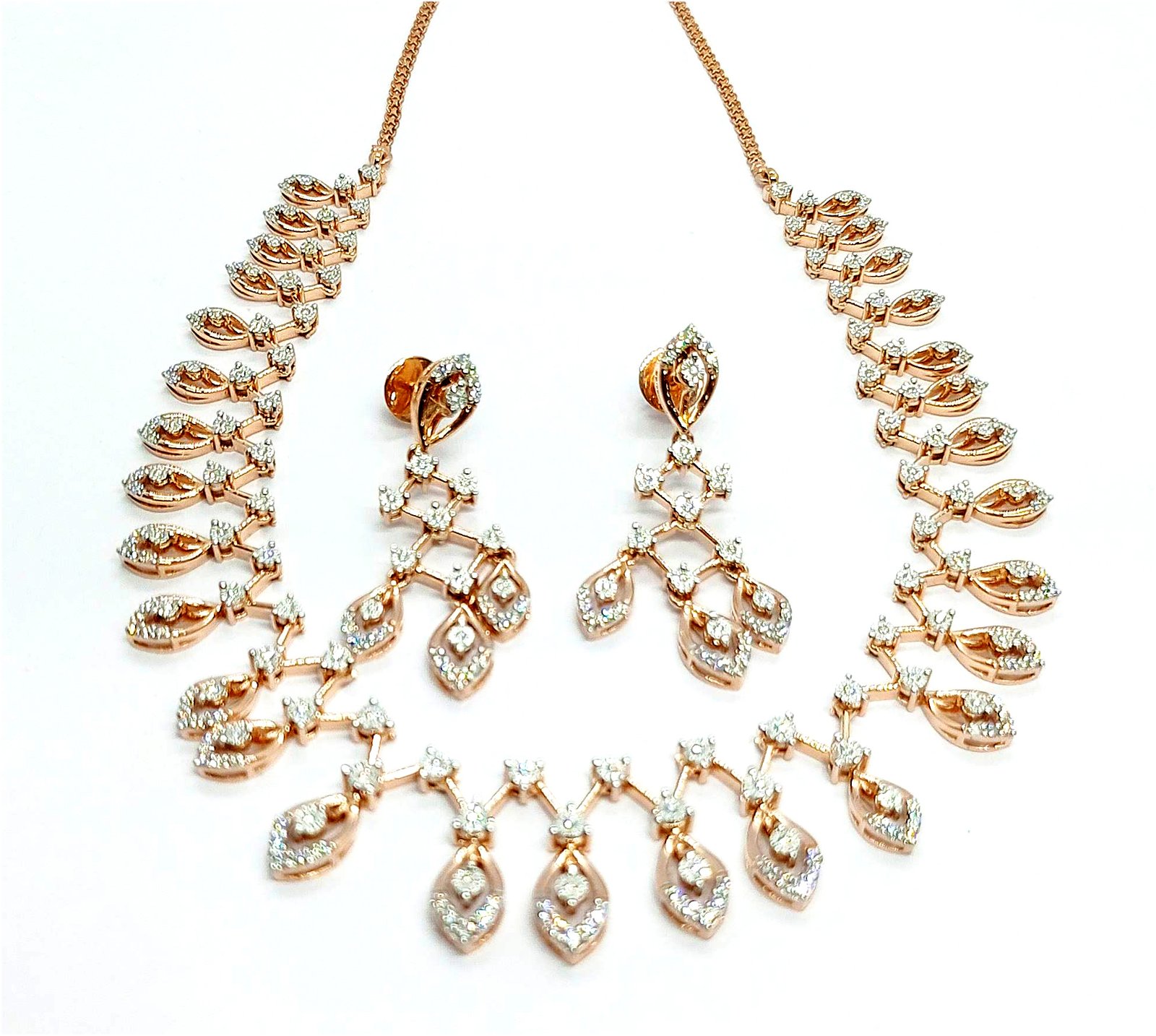 One Necklace Set weighing in total 33.96 gms, studded with 263 Pcs Diamonds.