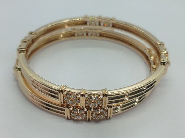 One pair Bangles weighing in total 39.14 gms, studded with 112 Pcs of Diamonds.