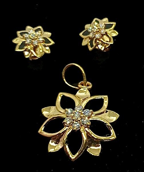 One Pendent Set weighing in total 2.50 gms, studded with 21 Pcs of Diamonds.