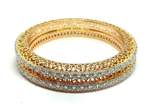 : Article Description :One pair Bangles weighing in total 49.63 gms, studded with 112 Pcs of Diamonds.![]() SYNTHETIC CUBIC ZIRCONIA