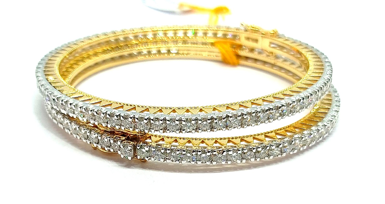 One pair Bangles weighing in total 44.15 gms, studded with 144 Pcs of Diamonds.
