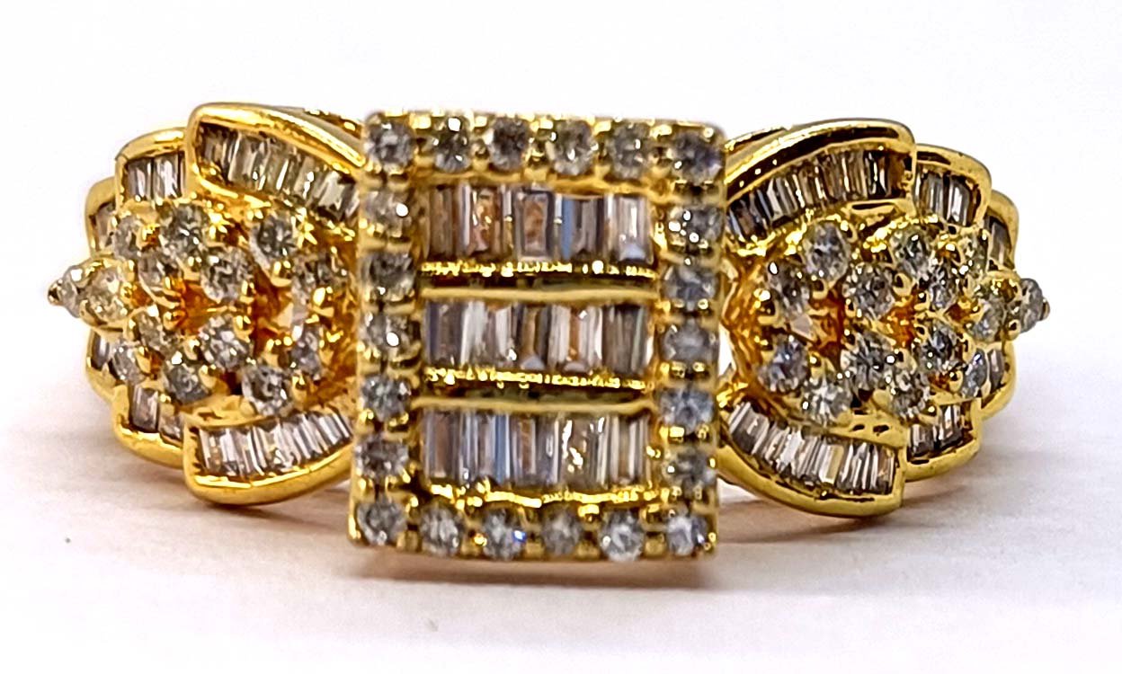 : Article Description :One Ring weighing in total 5.16 gms, studded with 113 Pcs. of Diamonds.![]() SYNTHETIC MOISSANITE
