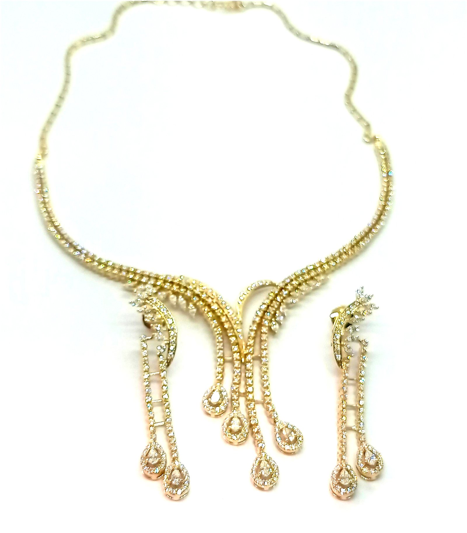 One Necklace Set weighing in total 44.50 gms, studded with 450 Pcs Diamonds.