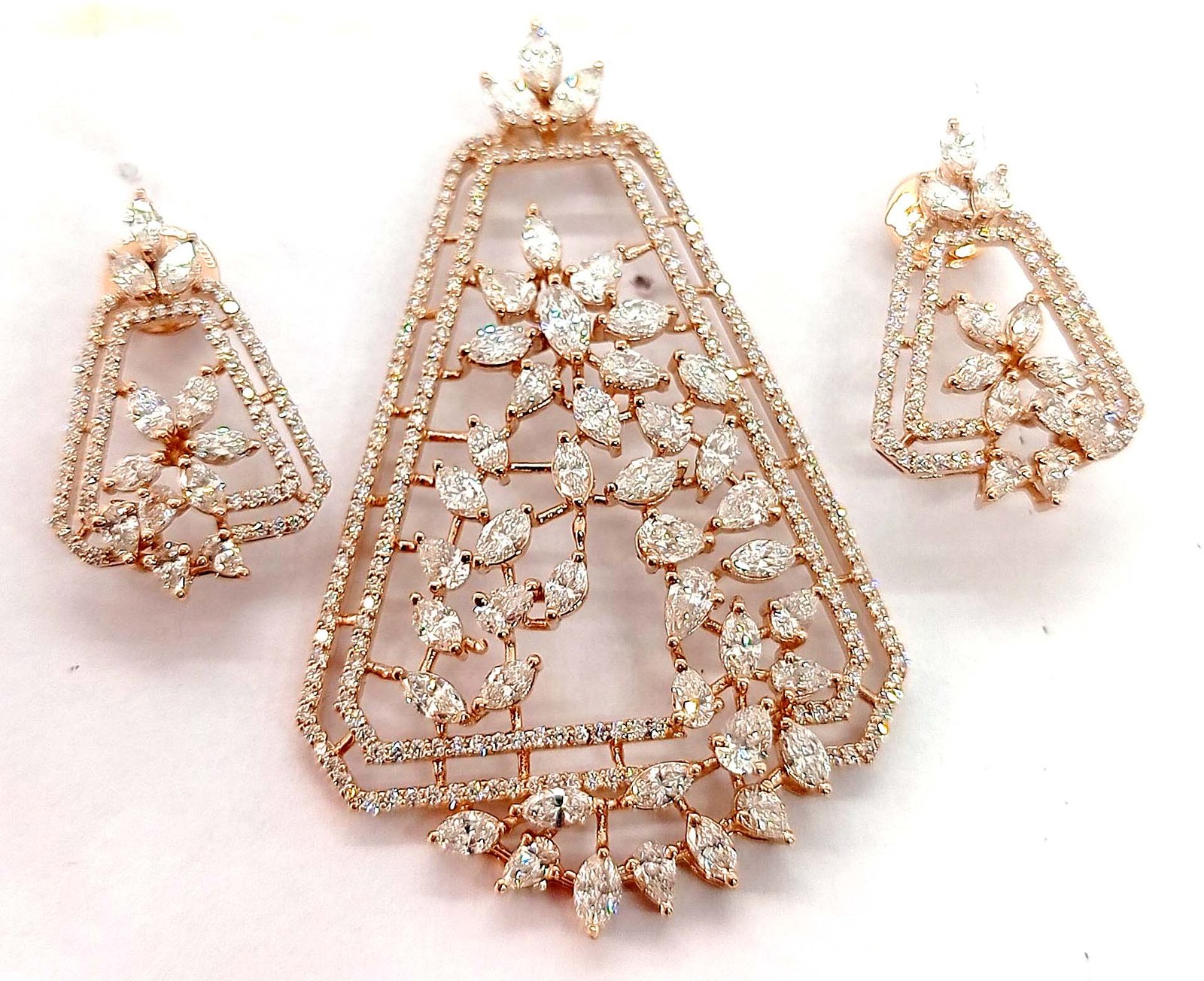 One Pendent Set weighing in total 13.84 gms, studded with 398 Pcs. Diamonds.