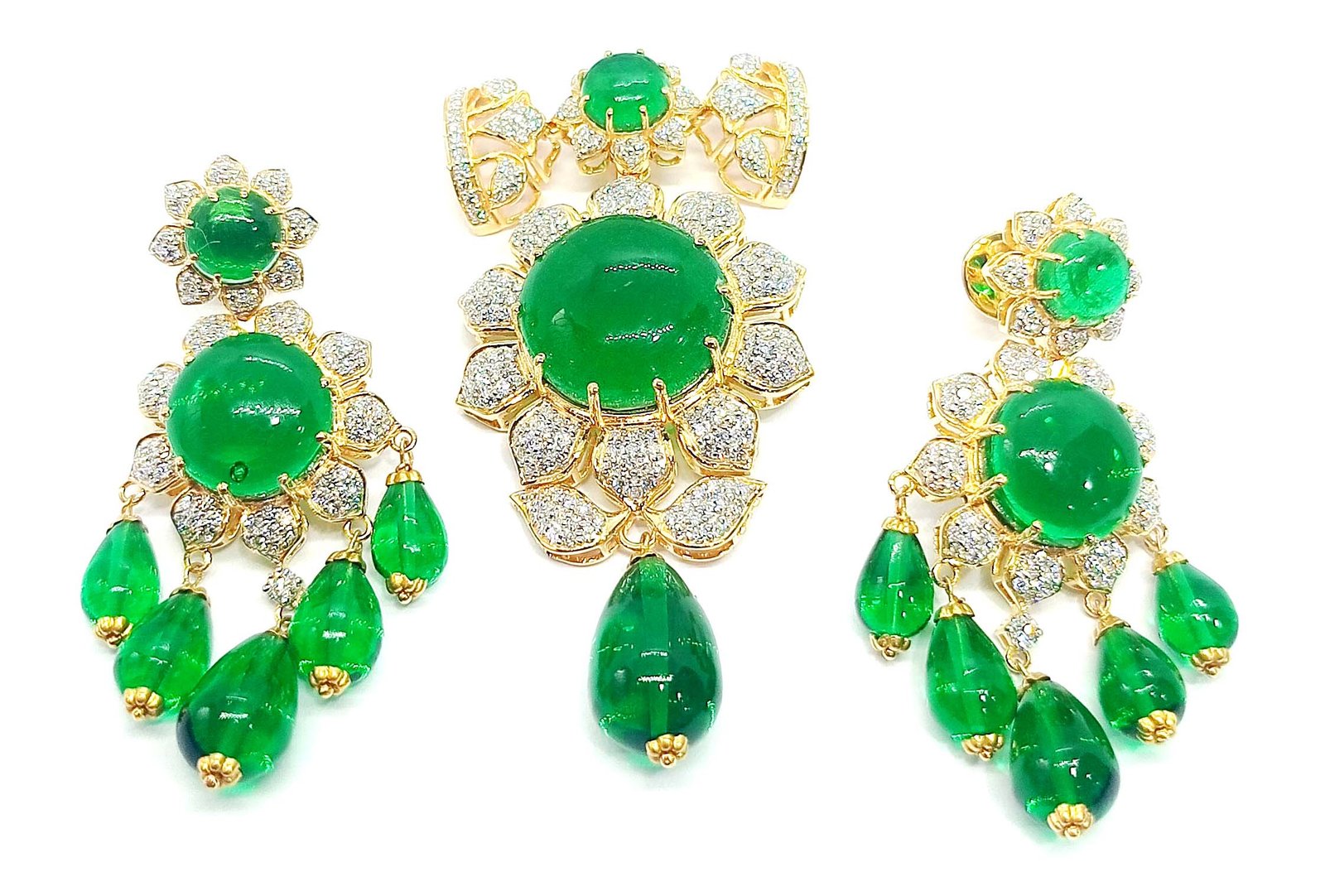 : Article Description :One Pendent Set weighing in total 44.22 gms, studded with 420 Pcs. Diamonds.![]() SYNTHETIC MOISSANITE