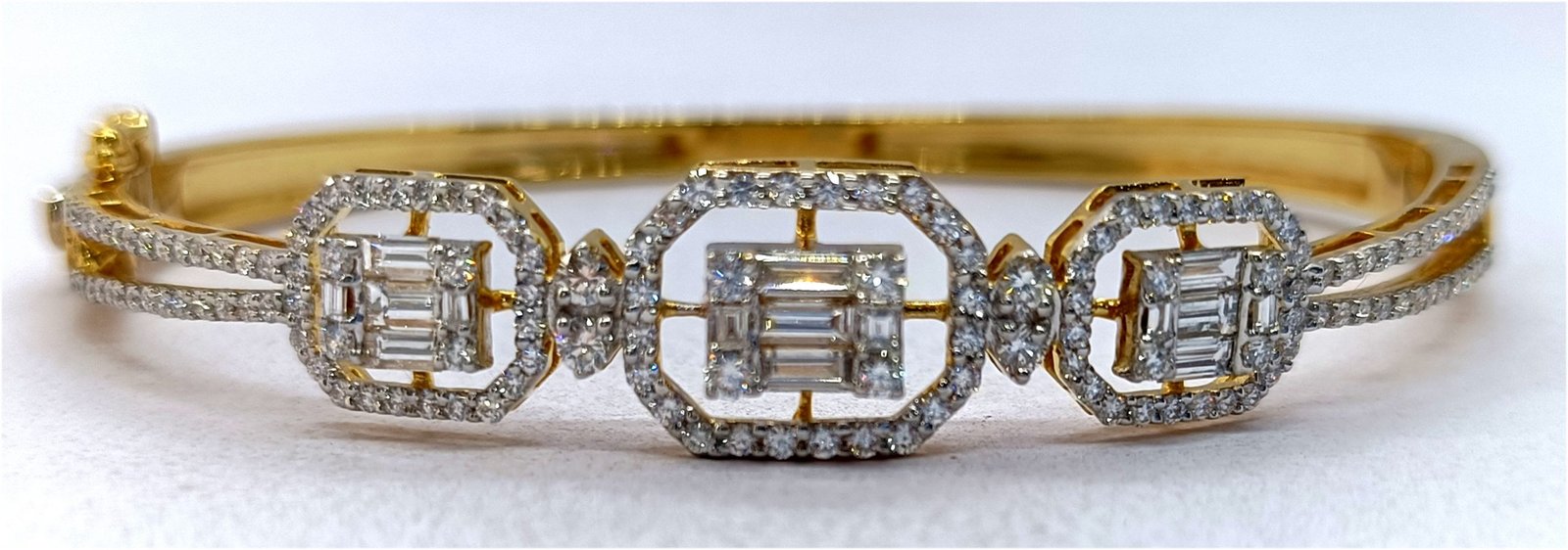 : Article Description :One Bracelet weighing in total 12.65 gms, studded with 161 Pcs Diamonds.![]() SYNTHETIC CUBIC ZIRCONIA