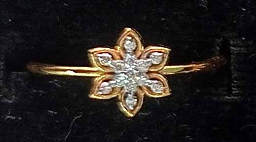 : Article Description :One Ring weighing in total 0.97 gms, studded with 13 Pcs Diamonds.![]() SYNTHETIC CUBIC ZIRCONIA