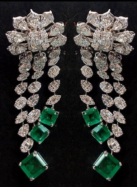 One pair Earring weighing in total 21.92 gms, studded with 330 Pcs Diamonds.