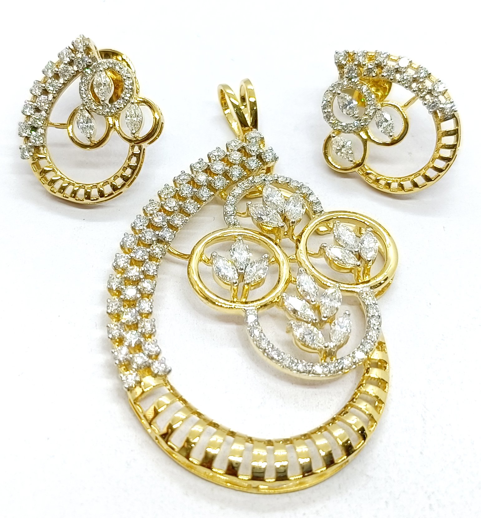 One Pendant Set weighing in total 12.19 gms, studded with 145 Pcs Diamonds.