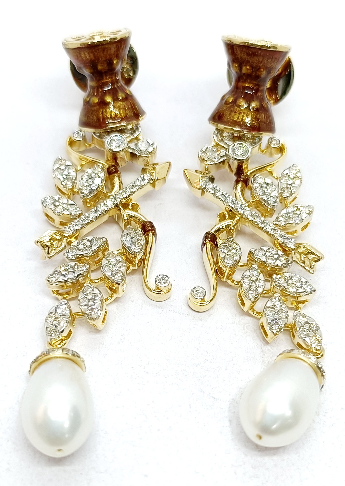 One pair Earring weighing in total 15.90 gms, studded with 116 Pcs Diamonds.