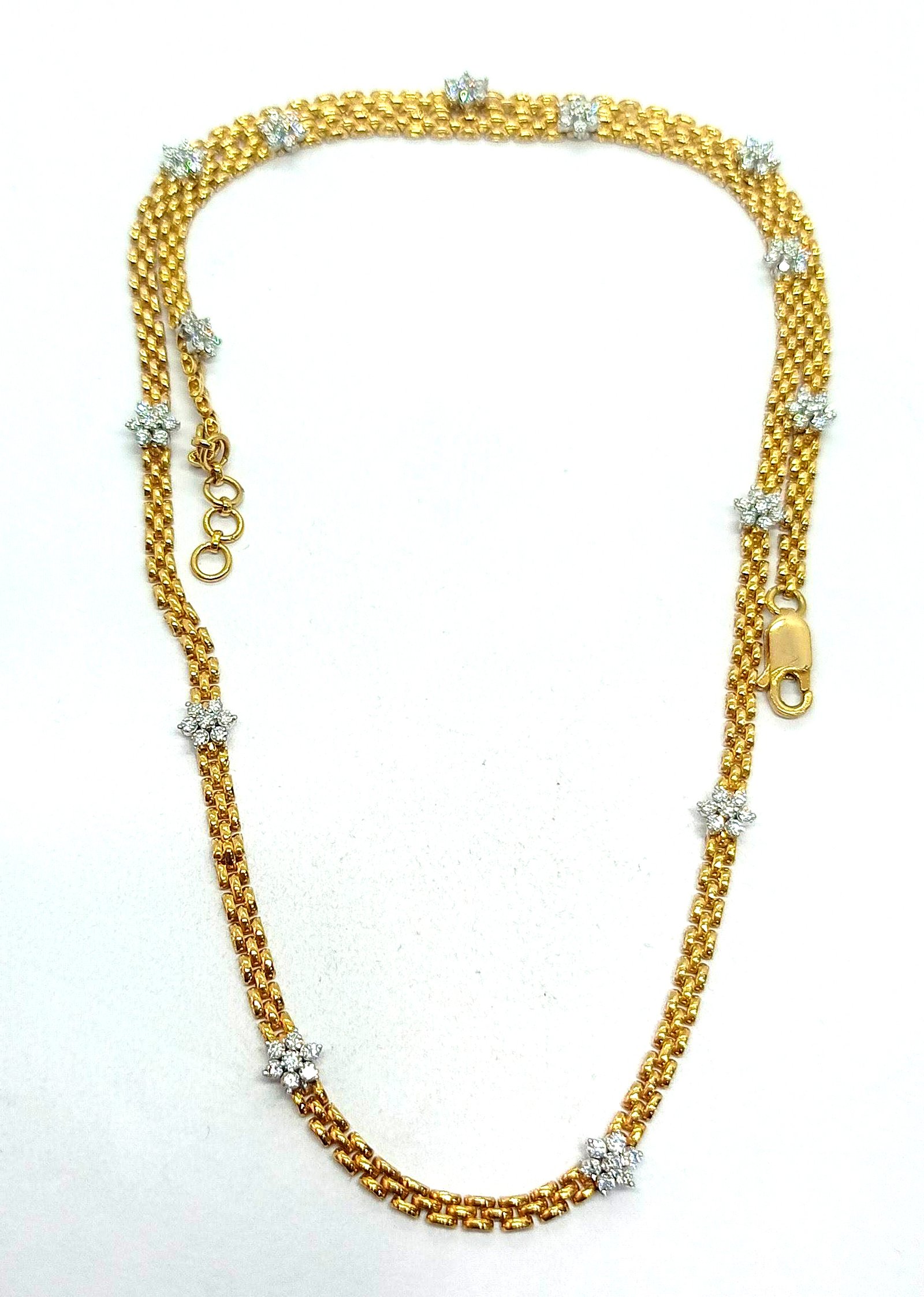 : Article Description :One Chain weighing in total 16.35 gms, studded with 98 Pcs Diamonds.![]() SYNTHETIC YELLOW SAPPHIRE