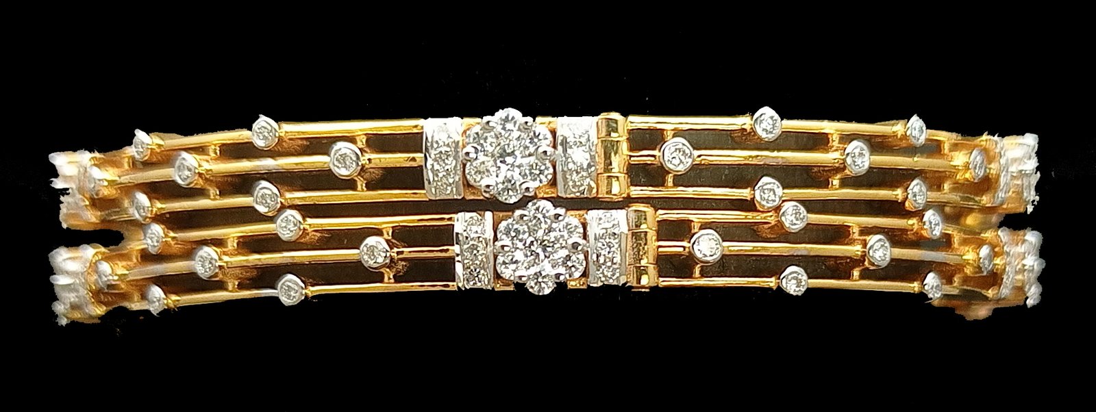 One pair Bangles weighing in total 40.13 gms, studded with 200 Pcs Diamonds.