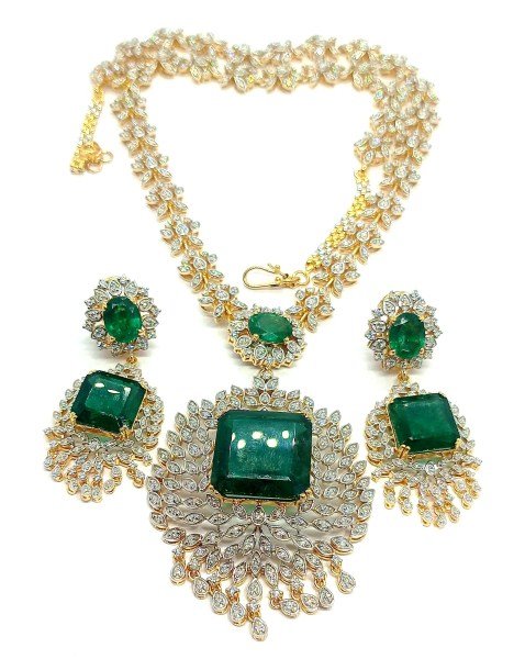 One Necklace Set weighing in total 108.06 gms, studded with 568 Diamonds.