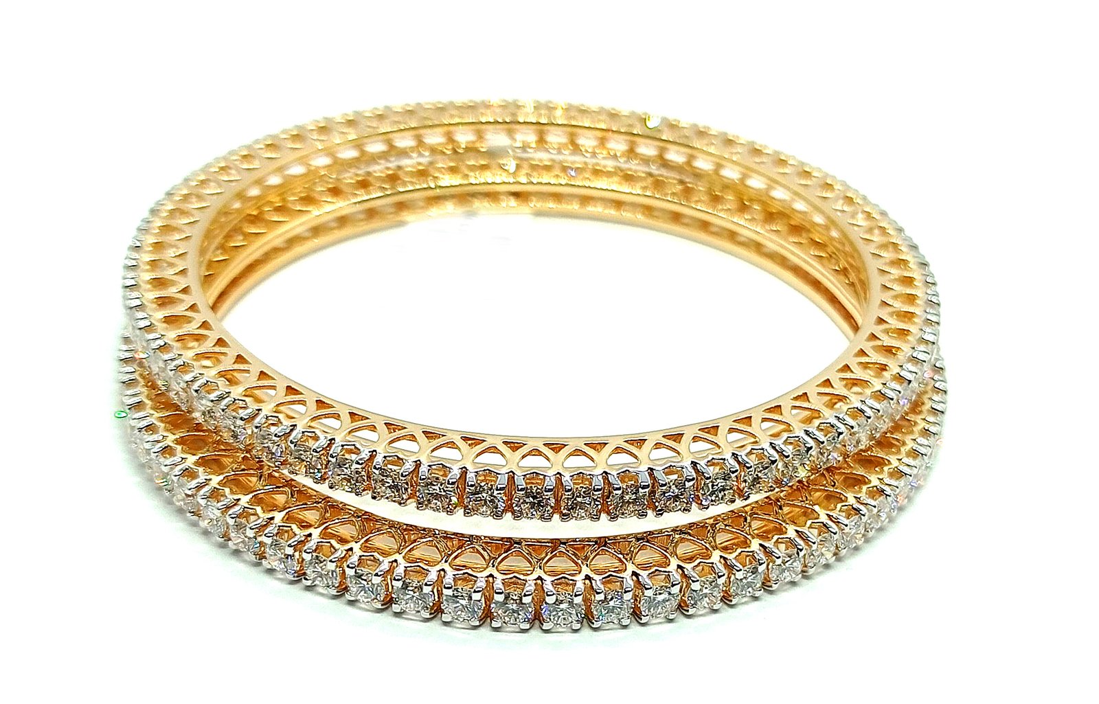 One pair Bangles weighing in total 43.68 gms, studded with 126 Pcs Diamonds.