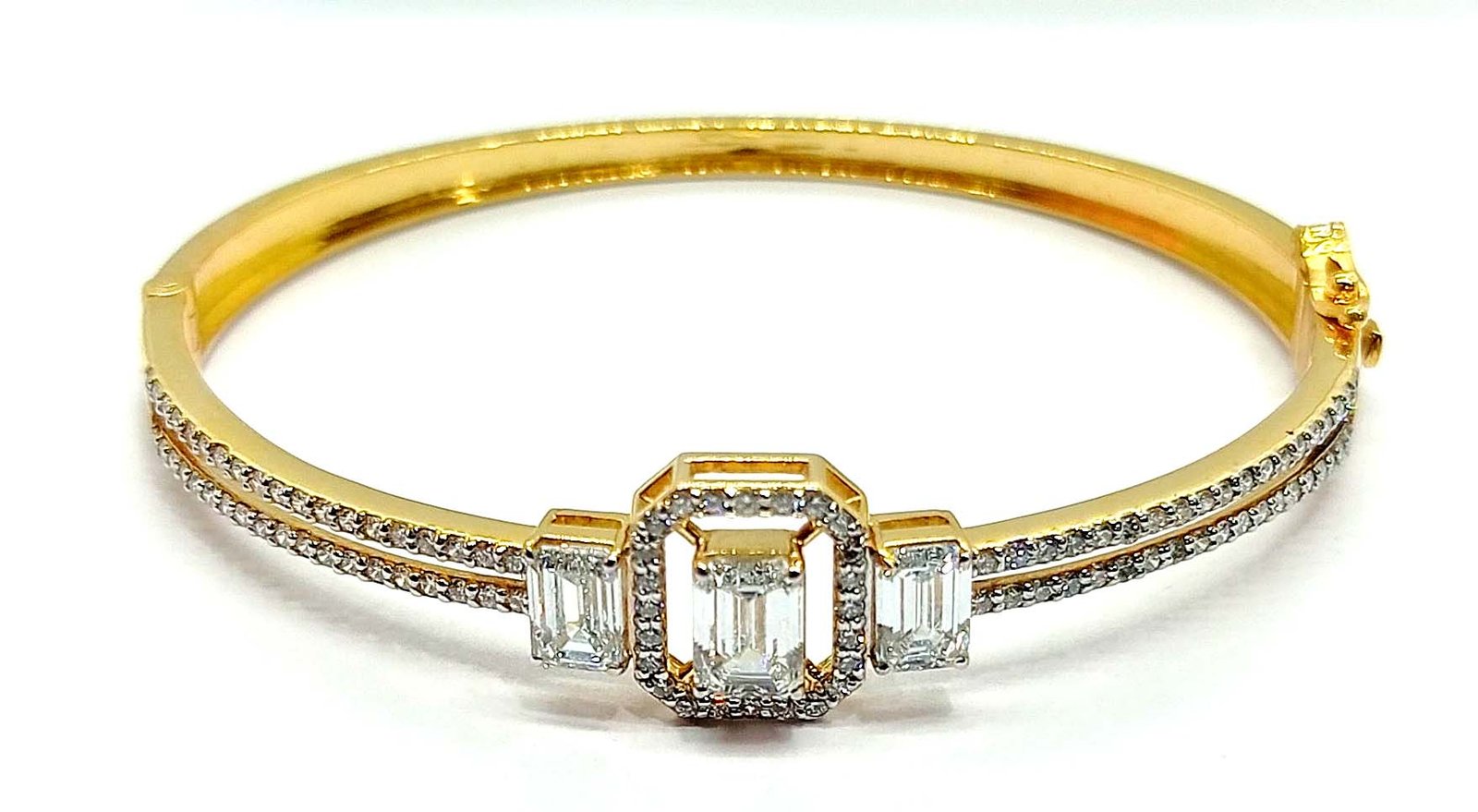 : Article Description :One Bracelet weighing in total 11.69 gms, studded with 103 Pcs. Diamonds.![]() SYNTHETIC MOISSANITE