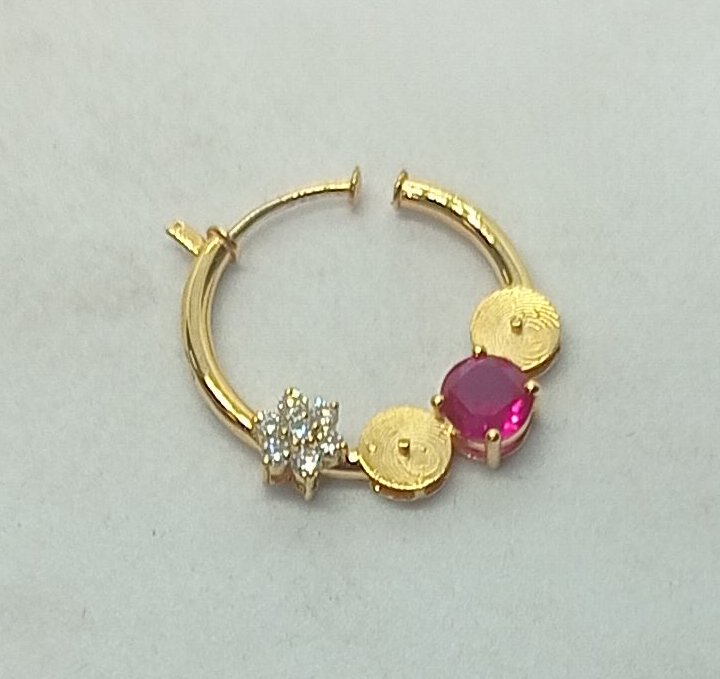 : Article Description :One Nose Pin weighing in total 2.90 gms, studded with 07 Pcs Diamonds.![]() NATURAL RUBY
